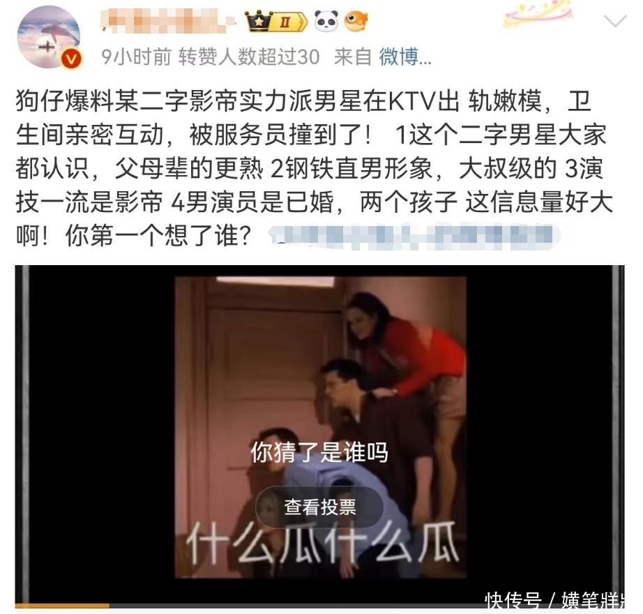 此前有爆料称,某“二字影帝”在KTV强行带嫩模进入洗手间,被服务员撞见,场面极为尴尬。