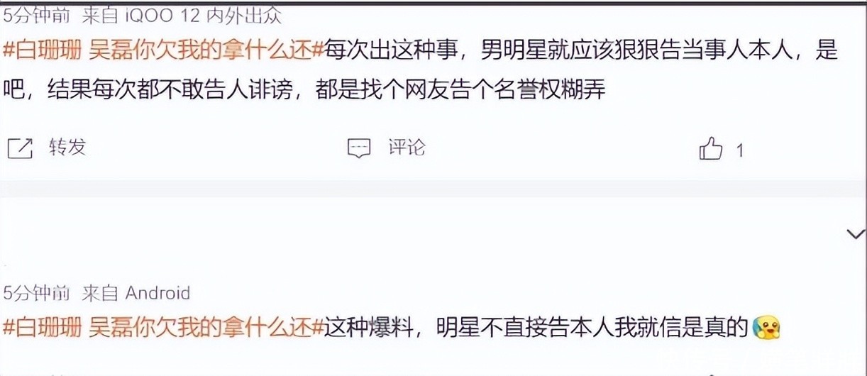 “她发照片了吗?明确指认了?怎么就成了坐实指控?”“每次这种爆料,明星就该直接起诉造谣者本人。可为什么总是躲着不敢告?只敢告几个转发的网友,这不是心虚是什么?”“只要不告当事人,我就默认是真的。”